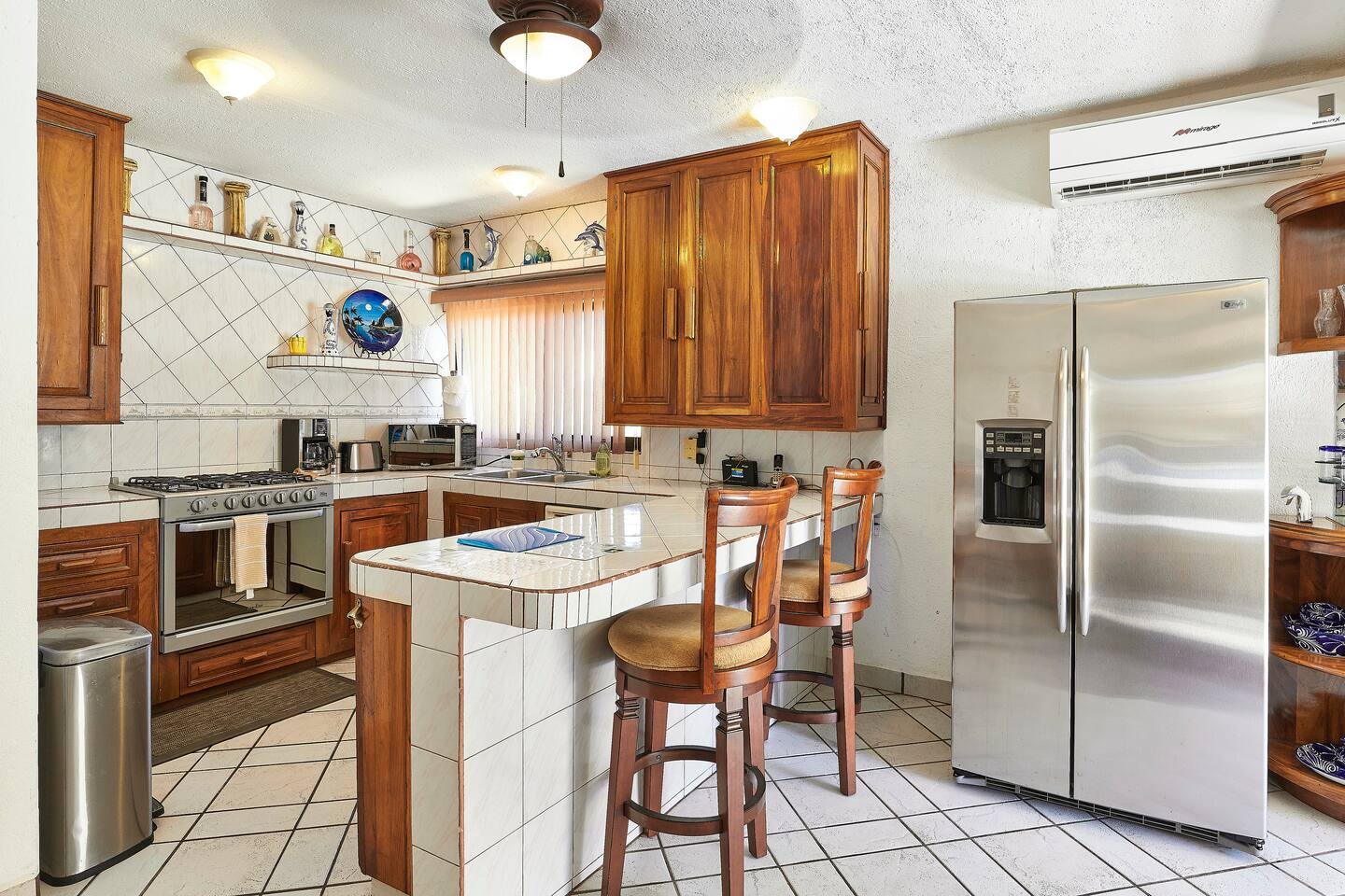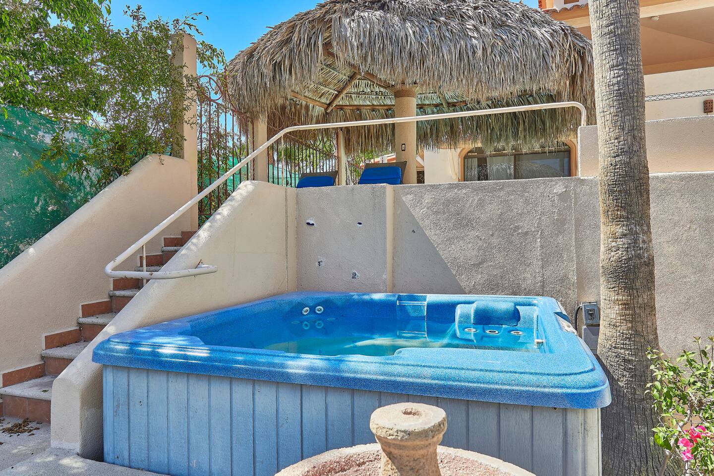 Villa is as close as you can get to the semi-private, swimmable Cabo Bello Beach. Very Private Villa with a pool, jacuzzi, Rooftop, and balcony views of the Ocean. Gated & guarded 24 hours. Walking distance to 5+ outstanding restaurants, The Thompson Hotel, Blue Net Hospital, shops, and 1 mi to Costco. 3 mi to Cabo Central and Downtown. The grocery store,” Fresko” is across the street next to the Wine store Vinoteca. Make amazing memories at this unique and family-friendly place, 3 beds/2 baths!