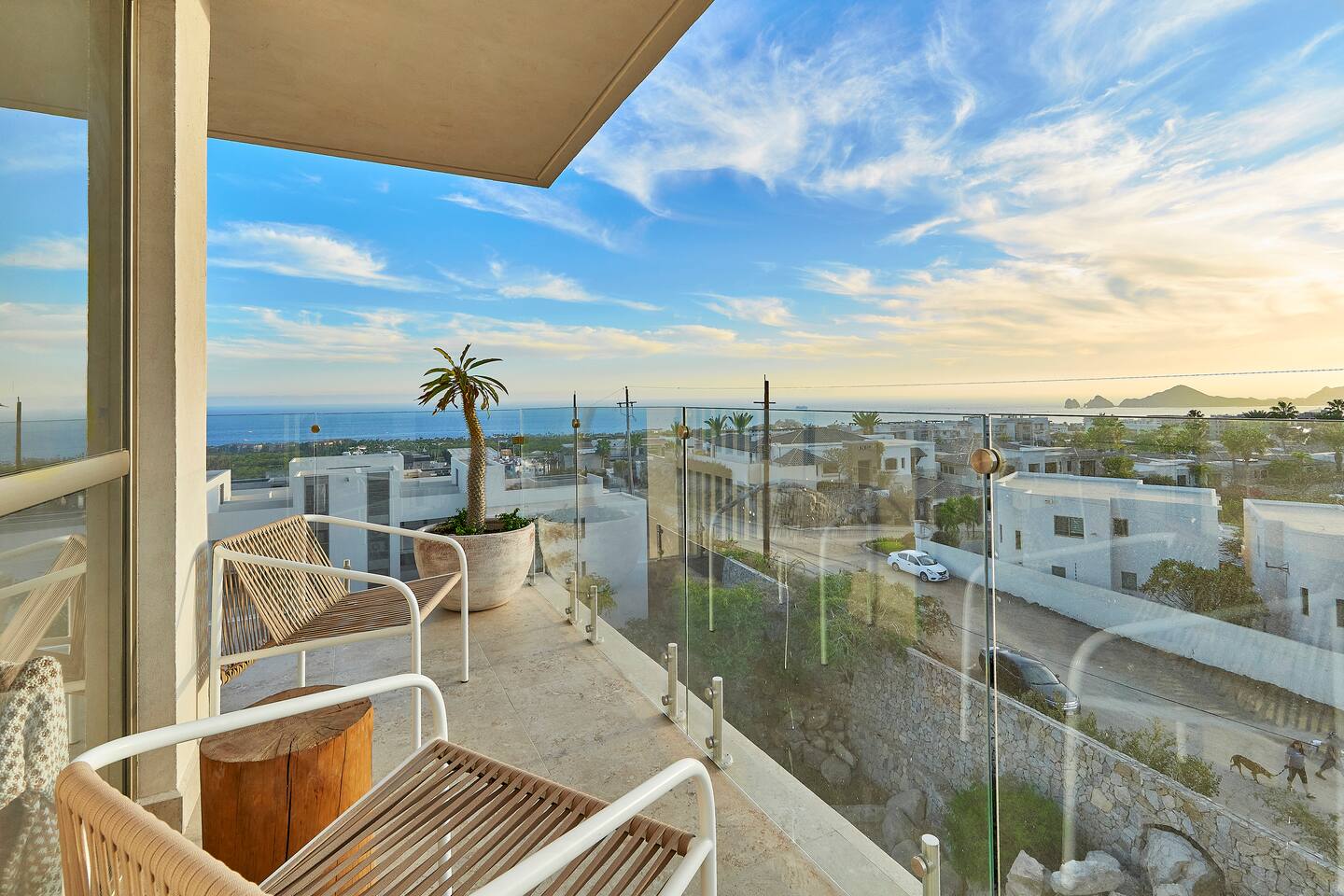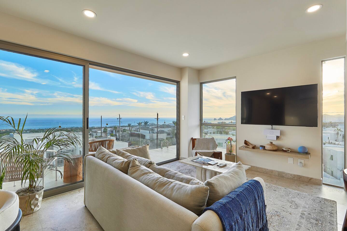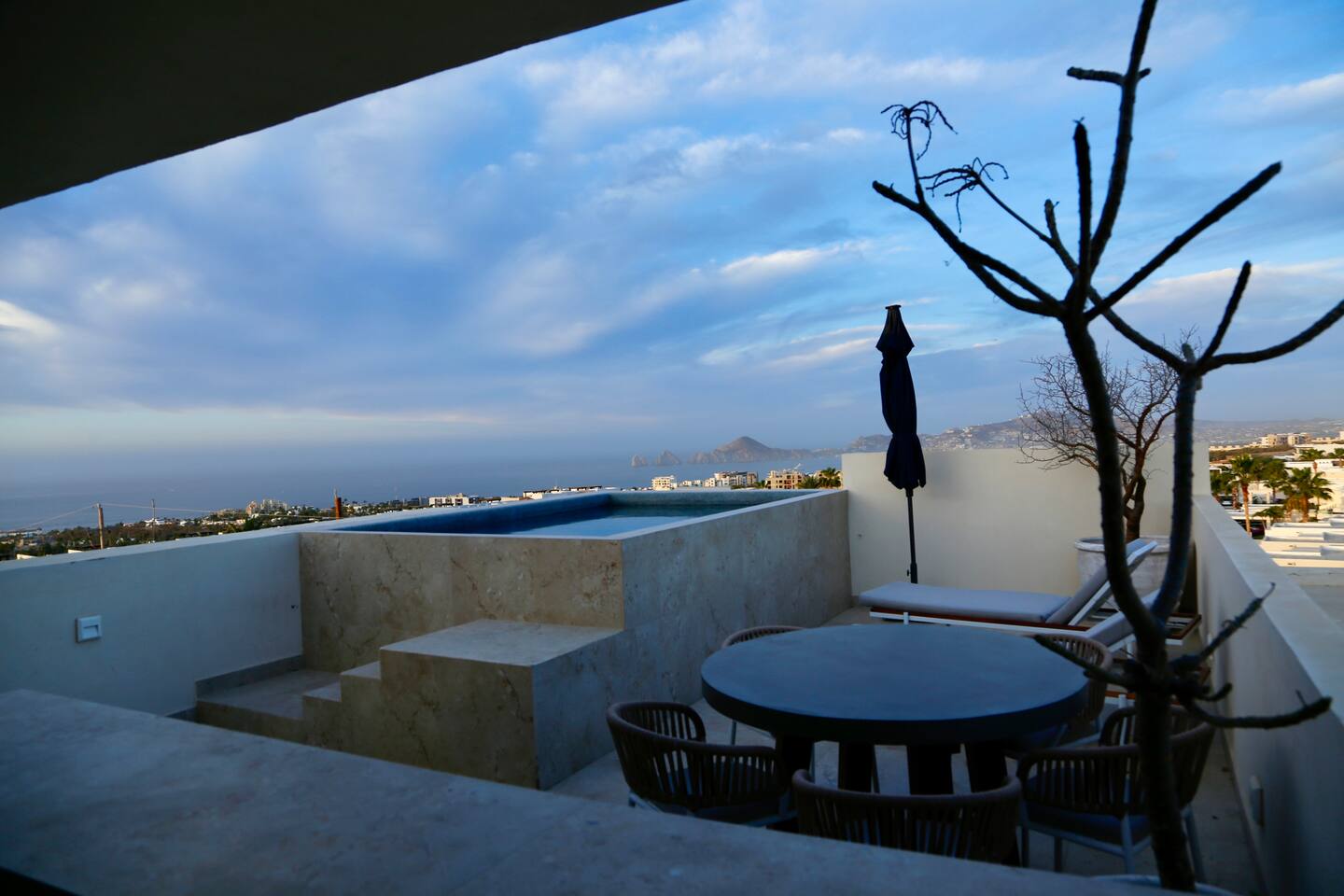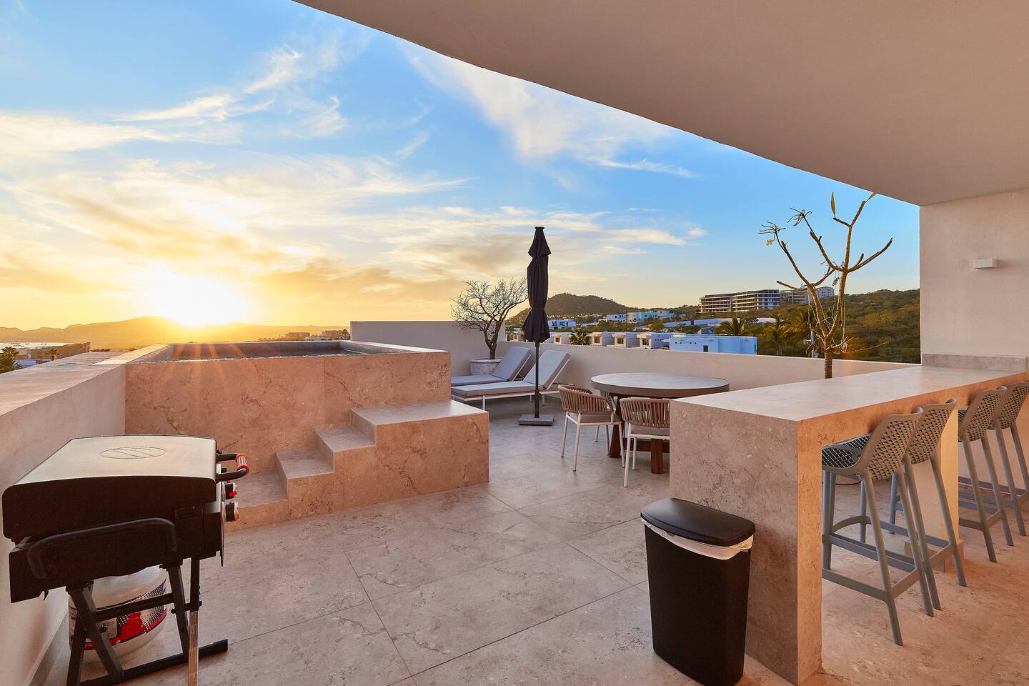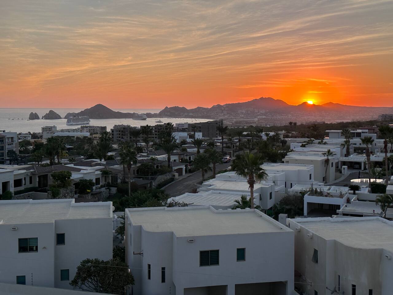 Thoughtfully designed as our personal home-away-from-home, this penthouse condo offers the perfect balance of modern luxury and local charm. Nestled in the exclusive El Tezal residential zone, Cabo Costa is perched above the Sea of Cortez and Pacific Ocean, offering breathtaking panoramic views, upscale amenities, and convenient access to everything Cabo has to offer. What Makes Cabo Costa Unique • Stunning Location: Overlooking the Sea of Cortez and Pacific Ocean, the property is perfectly positioned to capture Cabo’s world-famous sunsets. Just 7 minutes from downtown Cabo San Lucas, the Marina, and Beaches, you’ll enjoy a private retreat that’s close to the action. • Modern Mexican Design: Inspired by the desert’s vibrant colors and designed to harmonize with the local environment, Cabo Costa combines contemporary architecture with natural elegance. Close to Key Attractions • Downtown Cabo San Lucas: 7 minutes. • Hike Cerro de Las Antenas: @ Main Gate, up 1.6 miles to the top and unlimited hiking all around the mountains behind the condo. • The Marina: 10 minutes. • San José del Cabo: 29 minutes. • Beach Access (Our two favorite, Playa Santa Maria & Playa el Chileno): <10 minutes. • Shopping (Costco, Walmart, Fresko, Home Depot): 3–7 minutes. What You’ll Love • Unparalleled Views: Bask in sweeping, unobstructed vistas from the 4th-floor living and kitchen areas, the expansive wrap-around balcony, or your private 5th-floor rooftop terrace, offering breathtaking panoramas to the South, West, and North. • Premium Comfort: From plush bedding to designer furniture, every detail has been curated for your ultimate relaxation. • Exclusive Features: A private rooftop splash pool, fully equipped chef’s kitchen, and drinkable filtered, conditioned (yes, we have our own water softener, UV light treatment, very unusual in MX) water throughout ensure a luxury experience. Bedrooms & Bathrooms • Master Suite: Indulge in a King bed with premium linens, a spa-inspired en-suite bathroom, bathrobes, and a walk-in closet with a secure safe. • Guest Bedroom: A cozy Queen bed with plush bedding, ample storage, and easy access to spa-inspired full en-suite bathroom. • Bathrooms: Two luxurious full bathrooms with walk-in showers, polished granite countertops, and a convenient half-bath. • Laundry: Full-size LG stackable washer and dryer paired with a tankless water heater for endless hot water. Living & Dining Areas • Open-Concept Design: A stylish living room seamlessly flows into the dining and kitchen areas, framed by floor-to-ceiling windows showcasing stunning Cabo views. • Dining Options: Choose between a sleek table for four or casual seating with one modern stool at the granite kitchen island. • Added Touches: Air conditioning, lush live plants, and two (living/kitchen & penthouse) 55” Smart TVs with Starlink Wi-Fi for ultra-fast, reliable internet no matter where you are are in our unit. Chef’s Kitchen Equipped for everything from quick breakfasts to gourmet feasts, this kitchen has it all: • SMEG 5-burner gas stovetop and wall oven. • Panasonic 4-in-1 microwave, air fryer, broiler, and convection oven. • Samsung refrigerator with built-in beverage center and advanced water filtration. • Samsung dishwasher with three racks and whisper-quiet operation. • Blackstone 22” outdoor grill on the Penthouse level for al fresco dining. • Comprehensive water filtration/UV and softener system for safe, high-quality water. Penthouse Rooftop Features Your private rooftop terrace is the crown jewel of this property: • Private splash pool with built-in bench seating overlooking Land’s End and El Arco Arch of Cabo San Lucas. • A bar/bench area with four comfortable chairs, a mini-fridge/freezer, Breville Air fryer/toaster oven and a sink. • Dining table for six and two lounge chairs beneath LED-lit 10-ft umbrellas. • Lush greenery featuring Torote and Plumeria trees for a touch of tropical beauty. • Perfect for sunrise coffees, sunset cocktails, or stargazing under the clear Cabo skies. Transportation Options: • Reserved covered parking space included for your own rental. • Convenient airport transfers with our trusted driver in a Suburban for <$100 USD each way. • Easy access to Uber for exploring the greater Cabo area without having to rent your own car. Cabo Costa Community Amenities • Concierge service and 24-hour security for peace of mind. • Community Infinity pool and a kids’ splash pool with wide ocean views. • State-of-the-art gym and wellness center. • Co-working space for productivity and relaxation. • Fire pit Covered Seating area by pool for social gatherings Why Stay Here? This penthouse isn’t just a place to stay—it’s a lifestyle. Whether you’re here for Cabo’s vibrant nightlife, serene beaches, or thrilling outdoor adventures, this luxurious condo offers the perfect home base. From the unmatched views to the modern Mexican design and exceptional amenities, every moment here is unforgettable. Book Your Stay Today! Don’t miss out on this one-of-a-kind property. Reserve now to experience the pinnacle of luxury, style, and breathtaking views in Cabo Costa! 🌟 5 Amazing Day Trips🌟 Discover the incredible variety of adventures you can enjoy just a short drive! From beaches to art, golf, and more, these day trips offer something for everyone staying at The Best Cabo Penthouse. 1️⃣ Sunday Brunch in Todos Santos Take a scenic, 1-hour drive to this charming colonial town. Stroll cobbled streets, explore art galleries, enjoy farm-to-table dining, and unwind on stunning beaches. 2️⃣ Relax at Playa Santa Maria Only 11 minutes from Cabo, this beautiful beach is perfect for swimming, snorkeling, or simply relaxing. Pack a picnic and cap the day with tacos at La Lupita. 3️⃣ Art Walk in San Jose del Cabo Visit on a Thursday evening for the vibrant Art Walk. Explore galleries, enjoy wine tastin