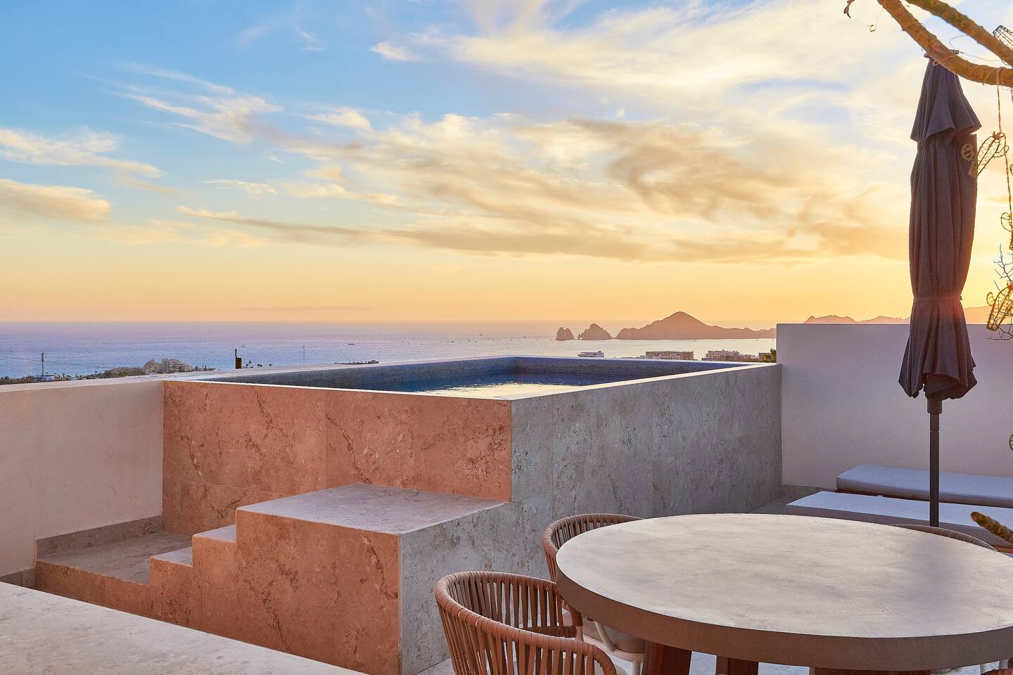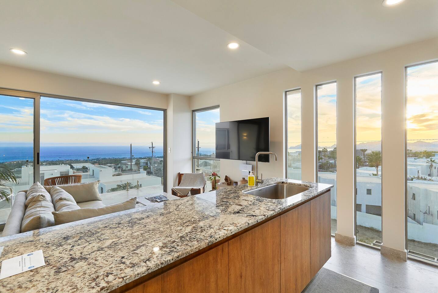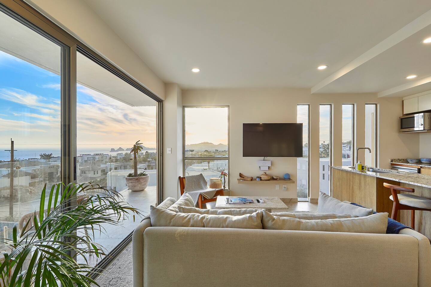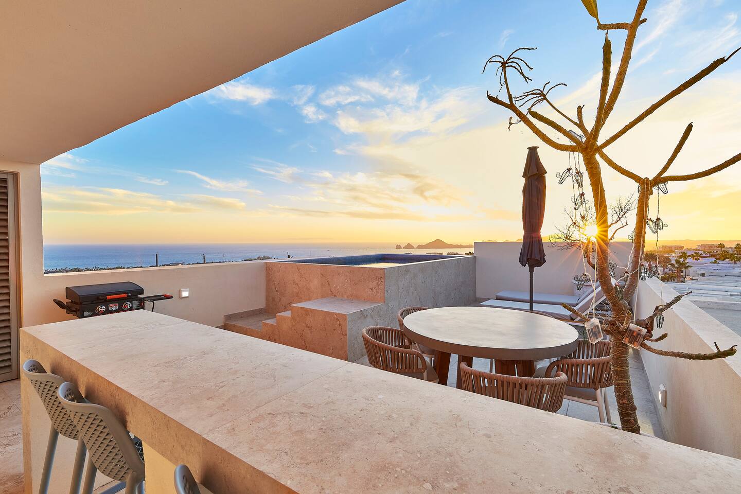 Thoughtfully designed as our personal home-away-from-home, this penthouse condo offers the perfect balance of modern luxury and local charm. Nestled in the exclusive El Tezal residential zone, Cabo Costa is perched above the Sea of Cortez and Pacific Ocean, offering breathtaking panoramic views, upscale amenities, and convenient access to everything Cabo has to offer. What Makes Cabo Costa Unique • Stunning Location: Overlooking the Sea of Cortez and Pacific Ocean, the property is perfectly positioned to capture Cabo’s world-famous sunsets. Just 7 minutes from downtown Cabo San Lucas, the Marina, and Beaches, you’ll enjoy a private retreat that’s close to the action. • Modern Mexican Design: Inspired by the desert’s vibrant colors and designed to harmonize with the local environment, Cabo Costa combines contemporary architecture with natural elegance. Close to Key Attractions • Downtown Cabo San Lucas: 7 minutes. • Hike Cerro de Las Antenas: @ Main Gate, up 1.6 miles to the top and unlimited hiking all around the mountains behind the condo. • The Marina: 10 minutes. • San José del Cabo: 29 minutes. • Beach Access (Our two favorite, Playa Santa Maria & Playa el Chileno): <10 minutes. • Shopping (Costco, Walmart, Fresko, Home Depot): 3–7 minutes. What You’ll Love • Unparalleled Views: Bask in sweeping, unobstructed vistas from the 4th-floor living and kitchen areas, the expansive wrap-around balcony, or your private 5th-floor rooftop terrace, offering breathtaking panoramas to the South, West, and North. • Premium Comfort: From plush bedding to designer furniture, every detail has been curated for your ultimate relaxation. • Exclusive Features: A private rooftop splash pool, fully equipped chef’s kitchen, and drinkable filtered, conditioned (yes, we have our own water softener, UV light treatment, very unusual in MX) water throughout ensure a luxury experience. Bedrooms & Bathrooms • Master Suite: Indulge in a King bed with premium linens, a spa-inspired en-suite bathroom, bathrobes, and a walk-in closet with a secure safe. • Guest Bedroom: A cozy Queen bed with plush bedding, ample storage, and easy access to spa-inspired full en-suite bathroom. • Bathrooms: Two luxurious full bathrooms with walk-in showers, polished granite countertops, and a convenient half-bath. • Laundry: Full-size LG stackable washer and dryer paired with a tankless water heater for endless hot water. Living & Dining Areas • Open-Concept Design: A stylish living room seamlessly flows into the dining and kitchen areas, framed by floor-to-ceiling windows showcasing stunning Cabo views. • Dining Options: Choose between a sleek table for four or casual seating with one modern stool at the granite kitchen island. • Added Touches: Air conditioning, lush live plants, and two (living/kitchen & penthouse) 55” Smart TVs with Starlink Wi-Fi for ultra-fast, reliable internet no matter where you are are in our unit. Chef’s Kitchen Equipped for everything from quick breakfasts to gourmet feasts, this kitchen has it all: • SMEG 5-burner gas stovetop and wall oven. • Panasonic 4-in-1 microwave, air fryer, broiler, and convection oven. • Samsung refrigerator with built-in beverage center and advanced water filtration. • Samsung dishwasher with three racks and whisper-quiet operation. • Blackstone 22” outdoor grill on the Penthouse level for al fresco dining. • Comprehensive water filtration/UV and softener system for safe, high-quality water. Penthouse Rooftop Features Your private rooftop terrace is the crown jewel of this property: • Private splash pool with built-in bench seating overlooking Land’s End and El Arco Arch of Cabo San Lucas. • A bar/bench area with four comfortable chairs, a mini-fridge/freezer, Breville Air fryer/toaster oven and a sink. • Dining table for six and two lounge chairs beneath LED-lit 10-ft umbrellas. • Lush greenery featuring Torote and Plumeria trees for a touch of tropical beauty. • Perfect for sunrise coffees, sunset cocktails, or stargazing under the clear Cabo skies. Transportation Options: • Reserved covered parking space included for your own rental. • Convenient airport transfers with our trusted driver in a Suburban for <$100 USD each way. • Easy access to Uber for exploring the greater Cabo area without having to rent your own car. Cabo Costa Community Amenities • Concierge service and 24-hour security for peace of mind. • Community Infinity pool and a kids’ splash pool with wide ocean views. • State-of-the-art gym and wellness center. • Co-working space for productivity and relaxation. • Fire pit Covered Seating area by pool for social gatherings Why Stay Here? This penthouse isn’t just a place to stay—it’s a lifestyle. Whether you’re here for Cabo’s vibrant nightlife, serene beaches, or thrilling outdoor adventures, this luxurious condo offers the perfect home base. From the unmatched views to the modern Mexican design and exceptional amenities, every moment here is unforgettable. Book Your Stay Today! Don’t miss out on this one-of-a-kind property. Reserve now to experience the pinnacle of luxury, style, and breathtaking views in Cabo Costa! 🌟 5 Amazing Day Trips🌟 Discover the incredible variety of adventures you can enjoy just a short drive! From beaches to art, golf, and more, these day trips offer something for everyone staying at The Best Cabo Penthouse. 1️⃣ Sunday Brunch in Todos Santos Take a scenic, 1-hour drive to this charming colonial town. Stroll cobbled streets, explore art galleries, enjoy farm-to-table dining, and unwind on stunning beaches. 2️⃣ Relax at Playa Santa Maria Only 11 minutes from Cabo, this beautiful beach is perfect for swimming, snorkeling, or simply relaxing. Pack a picnic and cap the day with tacos at La Lupita. 3️⃣ Art Walk in San Jose del Cabo Visit on a Thursday evening for the vibrant Art Walk. Explore galleries, enjoy wine tastin