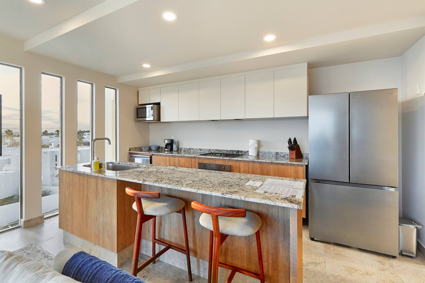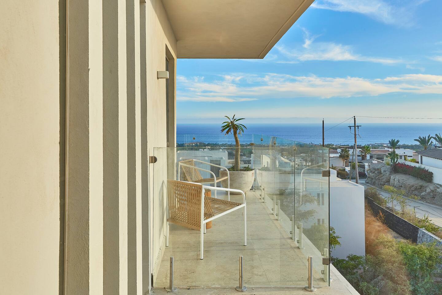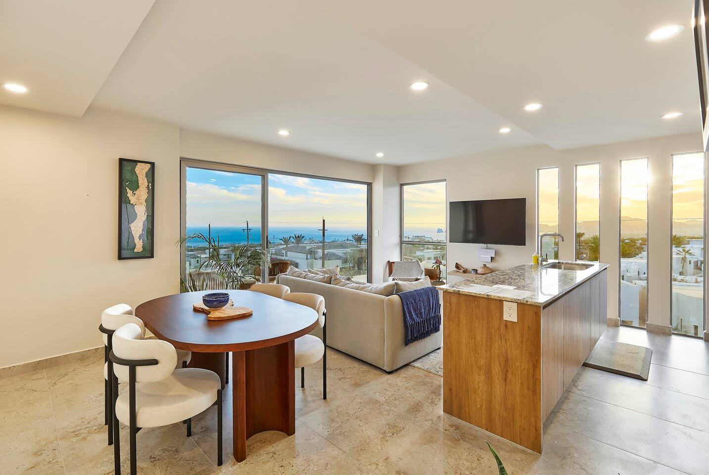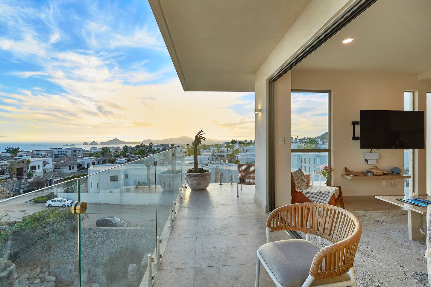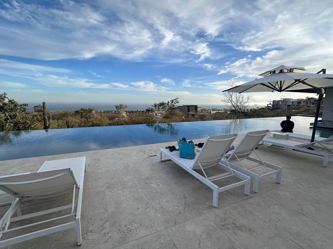 Thoughtfully designed as our personal home-away-from-home, this penthouse condo offers the perfect balance of modern luxury and local charm. Nestled in the exclusive El Tezal residential zone, Cabo Costa is perched above the Sea of Cortez and Pacific Ocean, offering breathtaking panoramic views, upscale amenities, and convenient access to everything Cabo has to offer. What Makes Cabo Costa Unique • Stunning Location: Overlooking the Sea of Cortez and Pacific Ocean, the property is perfectly positioned to capture Cabo’s world-famous sunsets. Just 7 minutes from downtown Cabo San Lucas, the Marina, and Beaches, you’ll enjoy a private retreat that’s close to the action. • Modern Mexican Design: Inspired by the desert’s vibrant colors and designed to harmonize with the local environment, Cabo Costa combines contemporary architecture with natural elegance. Close to Key Attractions • Downtown Cabo San Lucas: 7 minutes. • Hike Cerro de Las Antenas: @ Main Gate, up 1.6 miles to the top and unlimited hiking all around the mountains behind the condo. • The Marina: 10 minutes. • San José del Cabo: 29 minutes. • Beach Access (Our two favorite, Playa Santa Maria & Playa el Chileno): <10 minutes. • Shopping (Costco, Walmart, Fresko, Home Depot): 3–7 minutes. What You’ll Love • Unparalleled Views: Bask in sweeping, unobstructed vistas from the 4th-floor living and kitchen areas, the expansive wrap-around balcony, or your private 5th-floor rooftop terrace, offering breathtaking panoramas to the South, West, and North. • Premium Comfort: From plush bedding to designer furniture, every detail has been curated for your ultimate relaxation. • Exclusive Features: A private rooftop splash pool, fully equipped chef’s kitchen, and drinkable filtered, conditioned (yes, we have our own water softener, UV light treatment, very unusual in MX) water throughout ensure a luxury experience. Bedrooms & Bathrooms • Master Suite: Indulge in a King bed with premium linens, a spa-inspired en-suite bathroom, bathrobes, and a walk-in closet with a secure safe. • Guest Bedroom: A cozy Queen bed with plush bedding, ample storage, and easy access to spa-inspired full en-suite bathroom. • Bathrooms: Two luxurious full bathrooms with walk-in showers, polished granite countertops, and a convenient half-bath. • Laundry: Full-size LG stackable washer and dryer paired with a tankless water heater for endless hot water. Living & Dining Areas • Open-Concept Design: A stylish living room seamlessly flows into the dining and kitchen areas, framed by floor-to-ceiling windows showcasing stunning Cabo views. • Dining Options: Choose between a sleek table for four or casual seating with one modern stool at the granite kitchen island. • Added Touches: Air conditioning, lush live plants, and two (living/kitchen & penthouse) 55” Smart TVs with Starlink Wi-Fi for ultra-fast, reliable internet no matter where you are are in our unit. Chef’s Kitchen Equipped for everything from quick breakfasts to gourmet feasts, this kitchen has it all: • SMEG 5-burner gas stovetop and wall oven. • Panasonic 4-in-1 microwave, air fryer, broiler, and convection oven. • Samsung refrigerator with built-in beverage center and advanced water filtration. • Samsung dishwasher with three racks and whisper-quiet operation. • Blackstone 22” outdoor grill on the Penthouse level for al fresco dining. • Comprehensive water filtration/UV and softener system for safe, high-quality water. Penthouse Rooftop Features Your private rooftop terrace is the crown jewel of this property: • Private splash pool with built-in bench seating overlooking Land’s End and El Arco Arch of Cabo San Lucas. • A bar/bench area with four comfortable chairs, a mini-fridge/freezer, Breville Air fryer/toaster oven and a sink. • Dining table for six and two lounge chairs beneath LED-lit 10-ft umbrellas. • Lush greenery featuring Torote and Plumeria trees for a touch of tropical beauty. • Perfect for sunrise coffees, sunset cocktails, or stargazing under the clear Cabo skies. Transportation Options: • Reserved covered parking space included for your own rental. • Convenient airport transfers with our trusted driver in a Suburban for <$100 USD each way. • Easy access to Uber for exploring the greater Cabo area without having to rent your own car. Cabo Costa Community Amenities • Concierge service and 24-hour security for peace of mind. • Community Infinity pool and a kids’ splash pool with wide ocean views. • State-of-the-art gym and wellness center. • Co-working space for productivity and relaxation. • Fire pit Covered Seating area by pool for social gatherings Why Stay Here? This penthouse isn’t just a place to stay—it’s a lifestyle. Whether you’re here for Cabo’s vibrant nightlife, serene beaches, or thrilling outdoor adventures, this luxurious condo offers the perfect home base. From the unmatched views to the modern Mexican design and exceptional amenities, every moment here is unforgettable. Book Your Stay Today! Don’t miss out on this one-of-a-kind property. Reserve now to experience the pinnacle of luxury, style, and breathtaking views in Cabo Costa! 🌟 5 Amazing Day Trips🌟 Discover the incredible variety of adventures you can enjoy just a short drive! From beaches to art, golf, and more, these day trips offer something for everyone staying at The Best Cabo Penthouse. 1️⃣ Sunday Brunch in Todos Santos Take a scenic, 1-hour drive to this charming colonial town. Stroll cobbled streets, explore art galleries, enjoy farm-to-table dining, and unwind on stunning beaches. 2️⃣ Relax at Playa Santa Maria Only 11 minutes from Cabo, this beautiful beach is perfect for swimming, snorkeling, or simply relaxing. Pack a picnic and cap the day with tacos at La Lupita. 3️⃣ Art Walk in San Jose del Cabo Visit on a Thursday evening for the vibrant Art Walk. Explore galleries, enjoy wine tastin