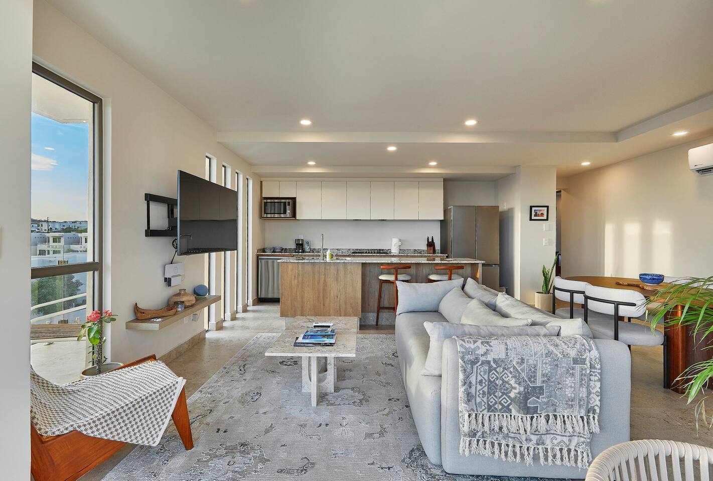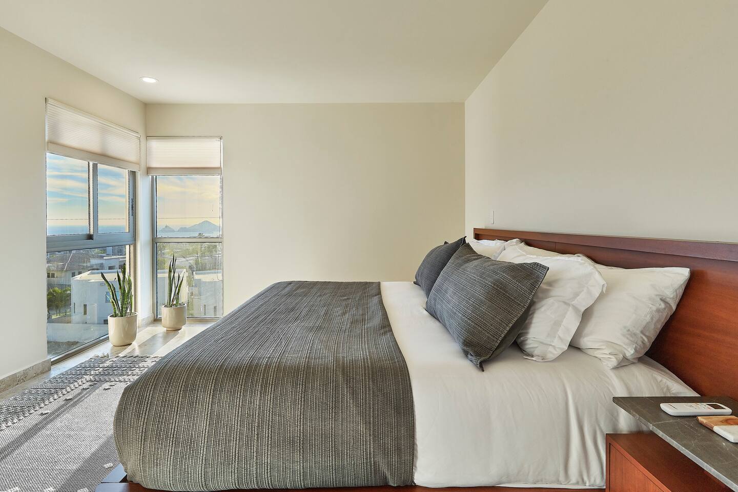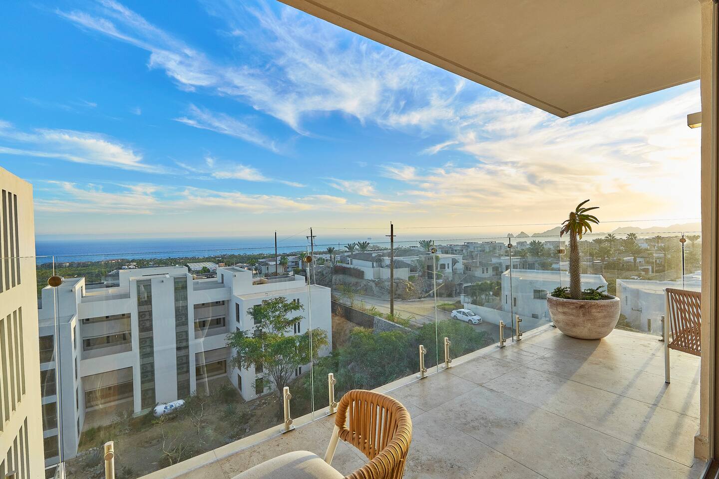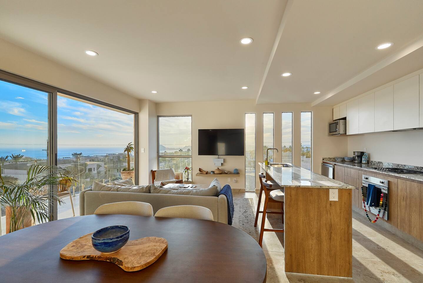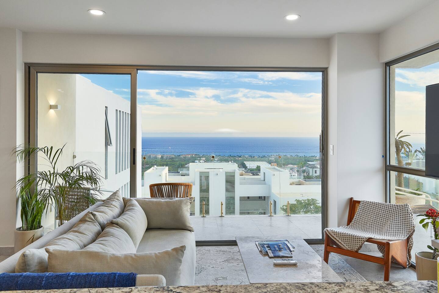 Thoughtfully designed as our personal home-away-from-home, this penthouse condo offers the perfect balance of modern luxury and local charm. Nestled in the exclusive El Tezal residential zone, Cabo Costa is perched above the Sea of Cortez and Pacific Ocean, offering breathtaking panoramic views, upscale amenities, and convenient access to everything Cabo has to offer. What Makes Cabo Costa Unique • Stunning Location: Overlooking the Sea of Cortez and Pacific Ocean, the property is perfectly positioned to capture Cabo’s world-famous sunsets. Just 7 minutes from downtown Cabo San Lucas, the Marina, and Beaches, you’ll enjoy a private retreat that’s close to the action. • Modern Mexican Design: Inspired by the desert’s vibrant colors and designed to harmonize with the local environment, Cabo Costa combines contemporary architecture with natural elegance. Close to Key Attractions • Downtown Cabo San Lucas: 7 minutes. • Hike Cerro de Las Antenas: @ Main Gate, up 1.6 miles to the top and unlimited hiking all around the mountains behind the condo. • The Marina: 10 minutes. • San José del Cabo: 29 minutes. • Beach Access (Our two favorite, Playa Santa Maria & Playa el Chileno): <10 minutes. • Shopping (Costco, Walmart, Fresko, Home Depot): 3–7 minutes. What You’ll Love • Unparalleled Views: Bask in sweeping, unobstructed vistas from the 4th-floor living and kitchen areas, the expansive wrap-around balcony, or your private 5th-floor rooftop terrace, offering breathtaking panoramas to the South, West, and North. • Premium Comfort: From plush bedding to designer furniture, every detail has been curated for your ultimate relaxation. • Exclusive Features: A private rooftop splash pool, fully equipped chef’s kitchen, and drinkable filtered, conditioned (yes, we have our own water softener, UV light treatment, very unusual in MX) water throughout ensure a luxury experience. Bedrooms & Bathrooms • Master Suite: Indulge in a King bed with premium linens, a spa-inspired en-suite bathroom, bathrobes, and a walk-in closet with a secure safe. • Guest Bedroom: A cozy Queen bed with plush bedding, ample storage, and easy access to spa-inspired full en-suite bathroom. • Bathrooms: Two luxurious full bathrooms with walk-in showers, polished granite countertops, and a convenient half-bath. • Laundry: Full-size LG stackable washer and dryer paired with a tankless water heater for endless hot water. Living & Dining Areas • Open-Concept Design: A stylish living room seamlessly flows into the dining and kitchen areas, framed by floor-to-ceiling windows showcasing stunning Cabo views. • Dining Options: Choose between a sleek table for four or casual seating with one modern stool at the granite kitchen island. • Added Touches: Air conditioning, lush live plants, and two (living/kitchen & penthouse) 55” Smart TVs with Starlink Wi-Fi for ultra-fast, reliable internet no matter where you are are in our unit. Chef’s Kitchen Equipped for everything from quick breakfasts to gourmet feasts, this kitchen has it all: • SMEG 5-burner gas stovetop and wall oven. • Panasonic 4-in-1 microwave, air fryer, broiler, and convection oven. • Samsung refrigerator with built-in beverage center and advanced water filtration. • Samsung dishwasher with three racks and whisper-quiet operation. • Blackstone 22” outdoor grill on the Penthouse level for al fresco dining. • Comprehensive water filtration/UV and softener system for safe, high-quality water. Penthouse Rooftop Features Your private rooftop terrace is the crown jewel of this property: • Private splash pool with built-in bench seating overlooking Land’s End and El Arco Arch of Cabo San Lucas. • A bar/bench area with four comfortable chairs, a mini-fridge/freezer, Breville Air fryer/toaster oven and a sink. • Dining table for six and two lounge chairs beneath LED-lit 10-ft umbrellas. • Lush greenery featuring Torote and Plumeria trees for a touch of tropical beauty. • Perfect for sunrise coffees, sunset cocktails, or stargazing under the clear Cabo skies. Transportation Options: • Reserved covered parking space included for your own rental. • Convenient airport transfers with our trusted driver in a Suburban for <$100 USD each way. • Easy access to Uber for exploring the greater Cabo area without having to rent your own car. Cabo Costa Community Amenities • Concierge service and 24-hour security for peace of mind. • Community Infinity pool and a kids’ splash pool with wide ocean views. • State-of-the-art gym and wellness center. • Co-working space for productivity and relaxation. • Fire pit Covered Seating area by pool for social gatherings Why Stay Here? This penthouse isn’t just a place to stay—it’s a lifestyle. Whether you’re here for Cabo’s vibrant nightlife, serene beaches, or thrilling outdoor adventures, this luxurious condo offers the perfect home base. From the unmatched views to the modern Mexican design and exceptional amenities, every moment here is unforgettable. Book Your Stay Today! Don’t miss out on this one-of-a-kind property. Reserve now to experience the pinnacle of luxury, style, and breathtaking views in Cabo Costa! 🌟 5 Amazing Day Trips🌟 Discover the incredible variety of adventures you can enjoy just a short drive! From beaches to art, golf, and more, these day trips offer something for everyone staying at The Best Cabo Penthouse. 1️⃣ Sunday Brunch in Todos Santos Take a scenic, 1-hour drive to this charming colonial town. Stroll cobbled streets, explore art galleries, enjoy farm-to-table dining, and unwind on stunning beaches. 2️⃣ Relax at Playa Santa Maria Only 11 minutes from Cabo, this beautiful beach is perfect for swimming, snorkeling, or simply relaxing. Pack a picnic and cap the day with tacos at La Lupita. 3️⃣ Art Walk in San Jose del Cabo Visit on a Thursday evening for the vibrant Art Walk. Explore galleries, enjoy wine tastin
