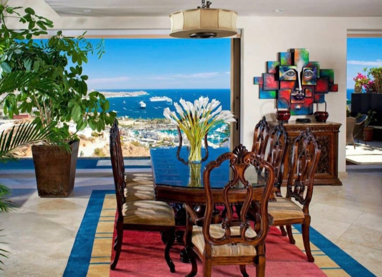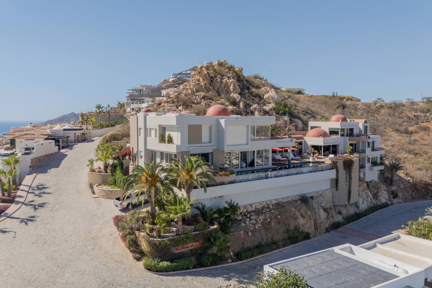 Stunning ocean views sitting on top of one of the highest peaks in the prestigious community of Pedregal! This villa comes with a chef, you only need to pay for groceries. Gorgeous heated pool, secluded feel, however just 10 minutes from the Marina, downtown, dining, shopping, and the beach. Whether soaking up the sun or unwinding in luxury, this villa offers the best of Cabo. We love it, and we know you will too!