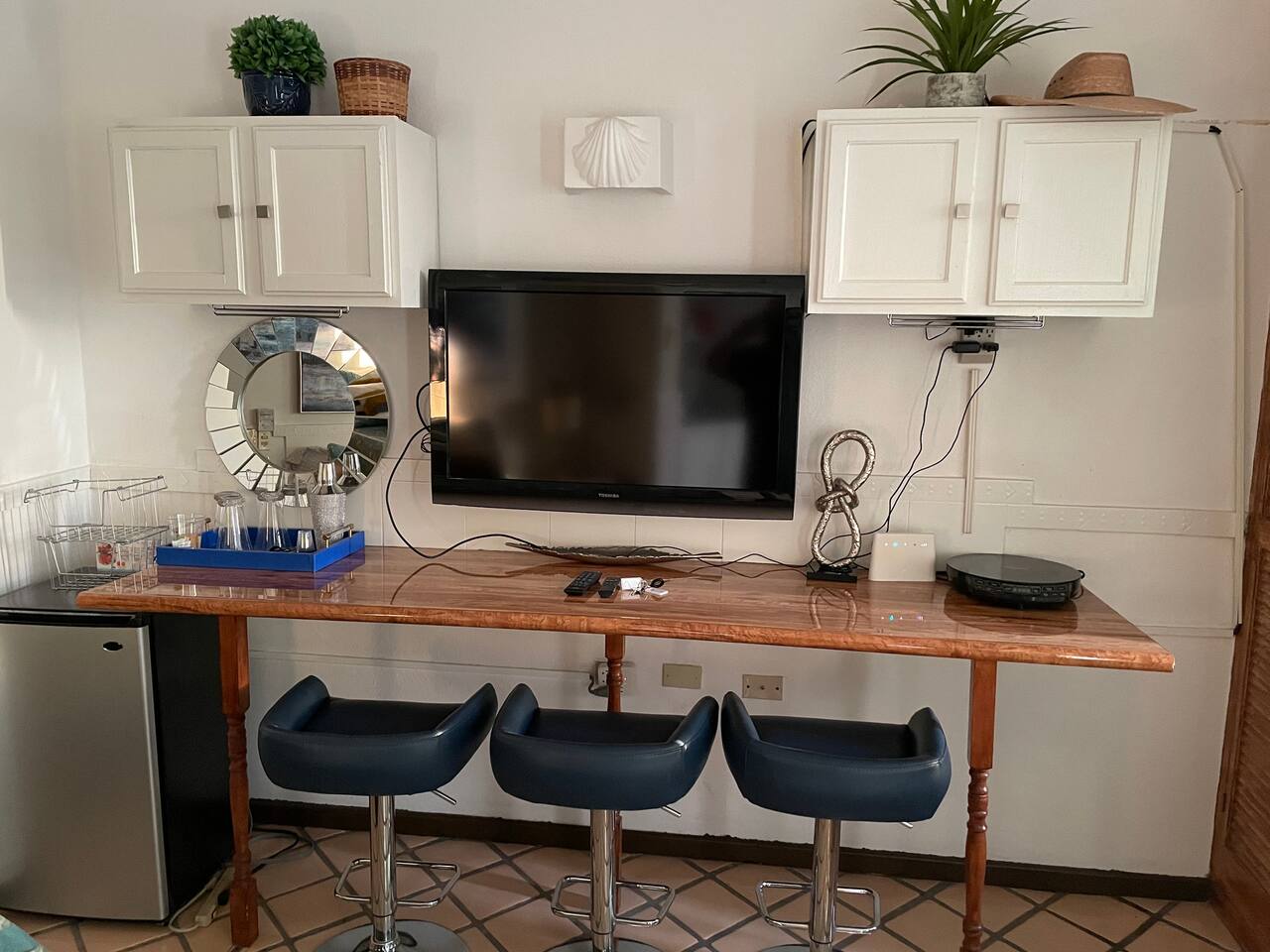 Great 1 bedroom with a full big bathroom, kitchenette, and amazing patio with ocean & marina views. Amenities include a microwave, coffee maker, mini refrigerator and freezer, dishes & utensils, television with cable/satellite, hair dryer, Iron & board.